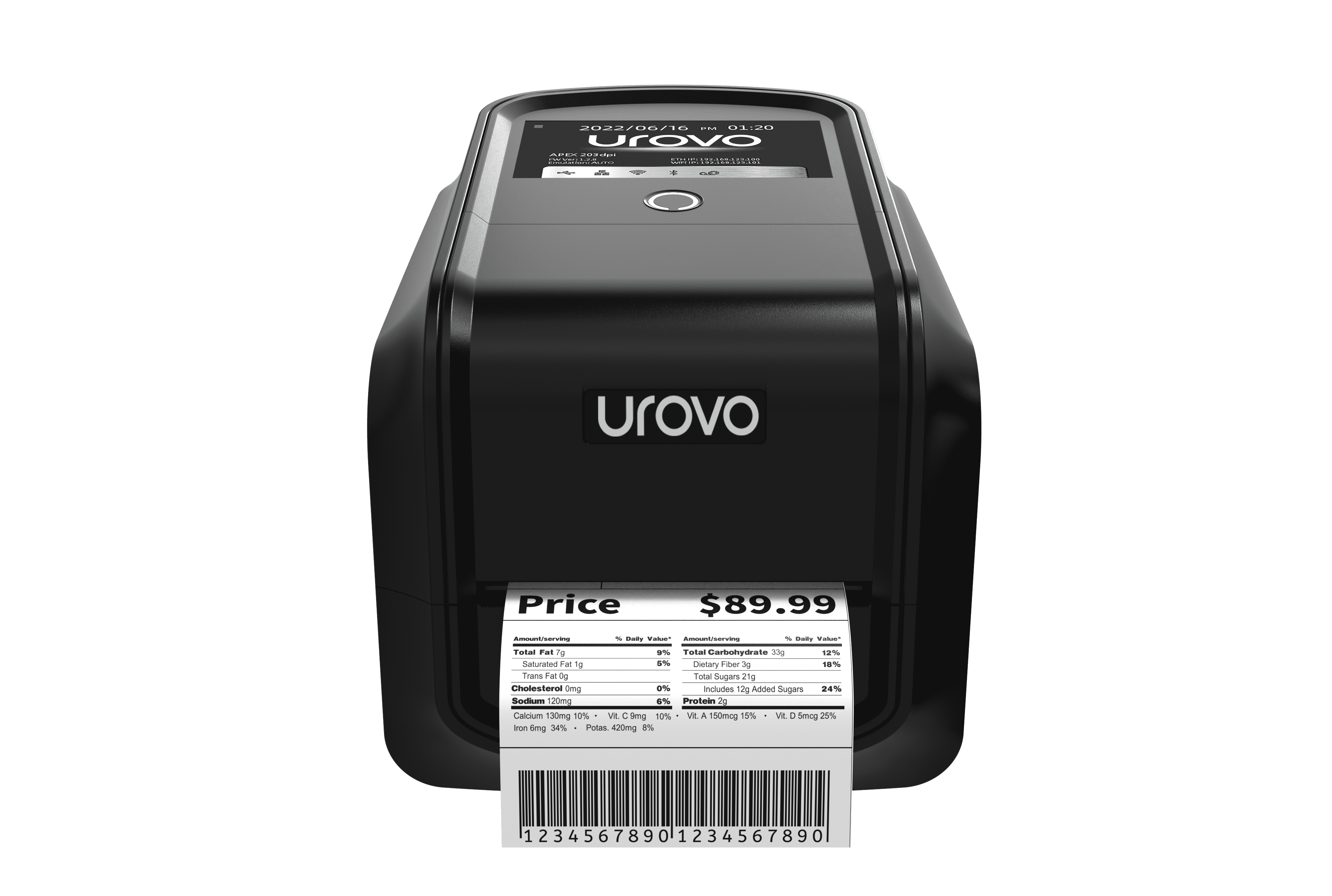 מדפסת התוויות התעשייתית Urovo D8120PLUS תוכננה לעבודה רציפה ולנפחי הדפסה גדולים. בזכות מעבד עוצמתי, זיכרון רחב ומהירות הדפסה של עד 203 מ"מ לשנייה, היא מאפשרת הפקת תוויות במהירות ובדיוק גבוהים – מבלי לפגוע באיכות או ברציפות העבודה, גם בסביבות לוגיסטיות ותעשייתיות עמוסות.